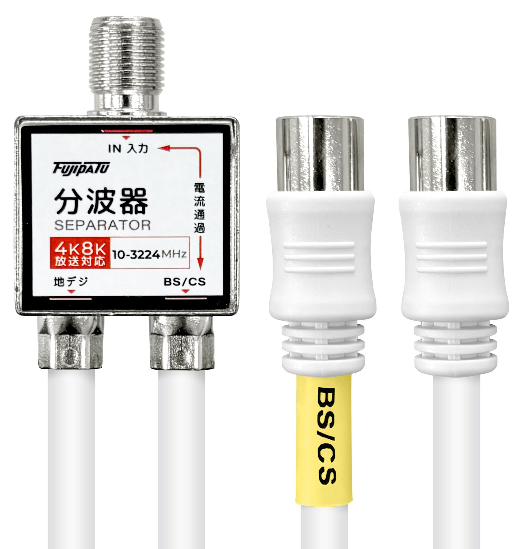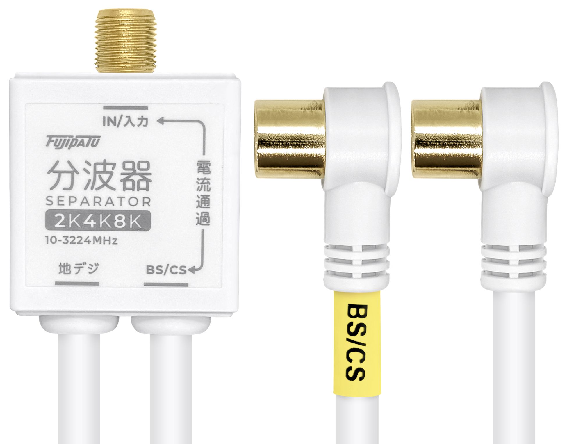 分波器 アンテナ分波器 4CFBケーブル付き 0.2m ストレートプラグ(差込式) 金メッキ (4K8K / 地デジ/BS/CS/CATV デジタル放送対応) ホワイト FF-S042WH