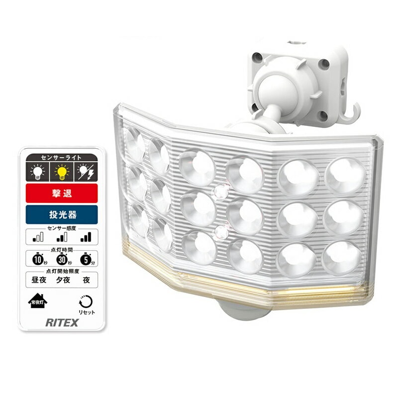 【ムサシ】18Wワイド フリーアーム式LEDセンサーライト リモコン付(LED-AC1018)