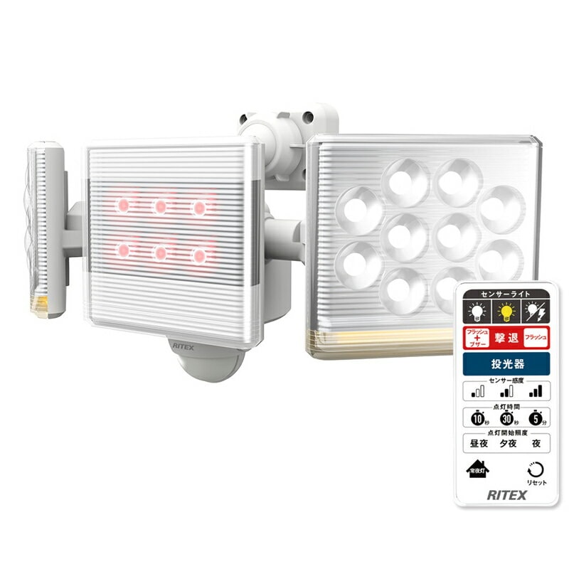 【ムサシ】12W×2灯 フリーアーム式LEDセンサーライト リモコン付(LED-AC2030)