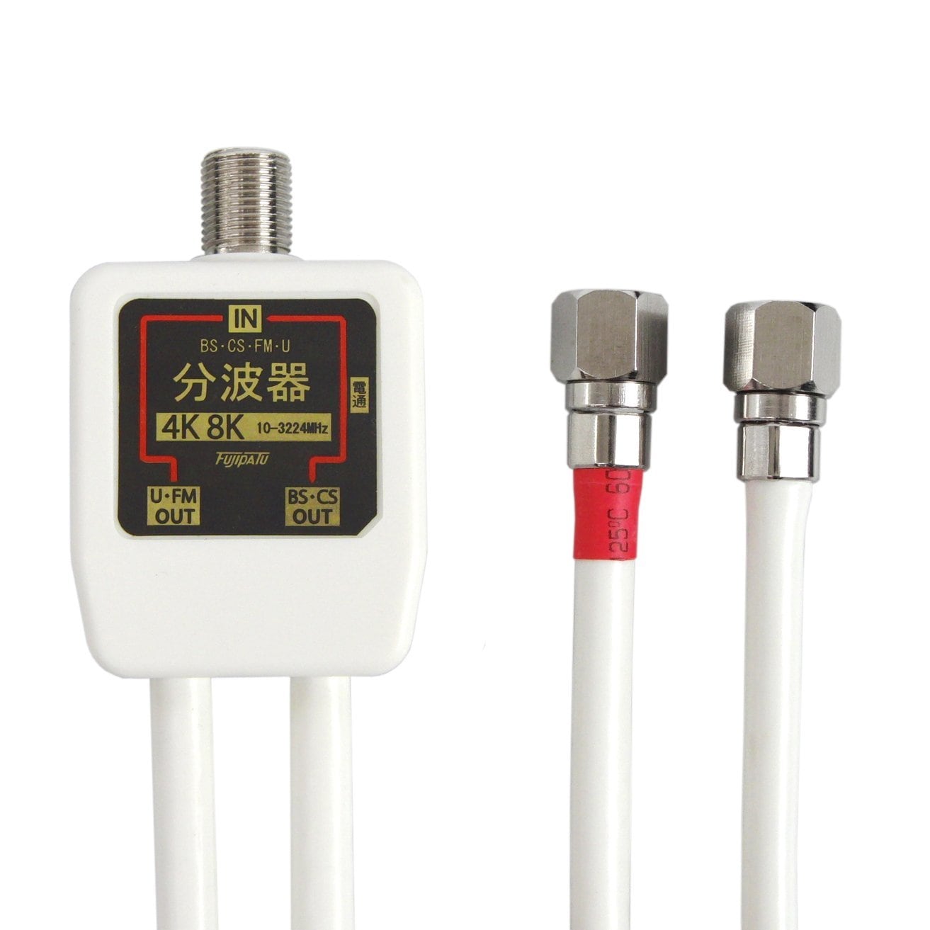 分波器 アンテナ分波器 4CFBケーブル付き 0.2m ストレートプラグ(差込式) 金メッキ (4K8K / 地デジ/BS/CS/CATV デジタル放送対応) ホワイト FF-S042WH