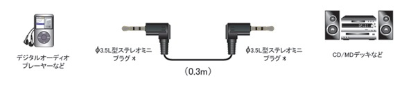 【仕様】:片側3.5mmステレオミニプラグ(L型プラグ)-片側3.5mmステレオミニプラグ(L型プラグ)